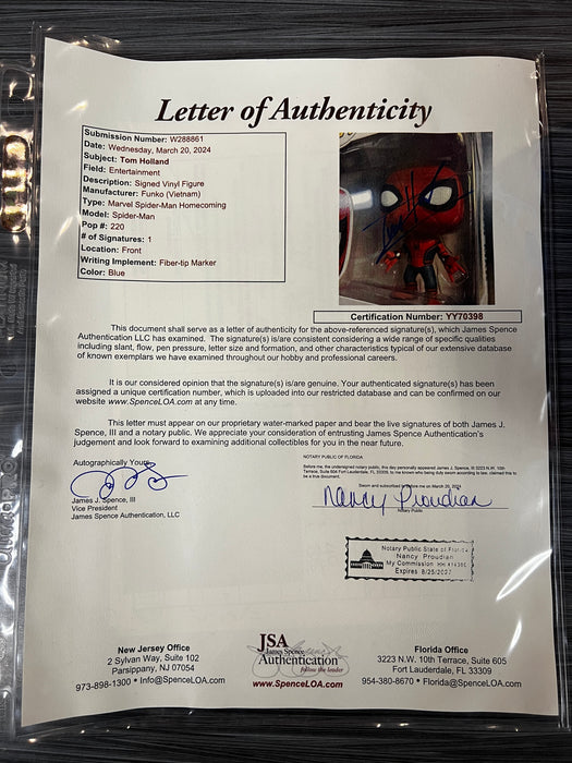 Funko POP! Marvel Spider-Man Homecoming: Spider-Man (Signed/Tom Holland/JSA)(Damaged Box) #220